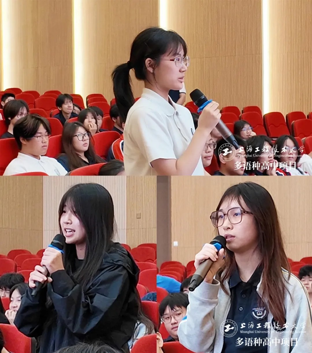 在講座的互動(dòng)環(huán)節(jié)中,穆爾西亞大學(xué)的兩位教授與我校師生展開了熱烈的問答交流。面對(duì)同學(xué)們的積極提問,現(xiàn)場(chǎng)氣氛輕松而熱烈。來自不同年級(jí)的學(xué)生們用西班牙語提出了有關(guān)學(xué)校食物、畢業(yè)難易度以及課后輔導(dǎo)相關(guān)安排等問題。兩位教授對(duì)學(xué)生們流利的西語表達(dá)給予了高度評(píng)價(jià),稱贊他們不僅具備扎實(shí)的語言能力,還能在實(shí)際場(chǎng)合中自信地溝通交流。